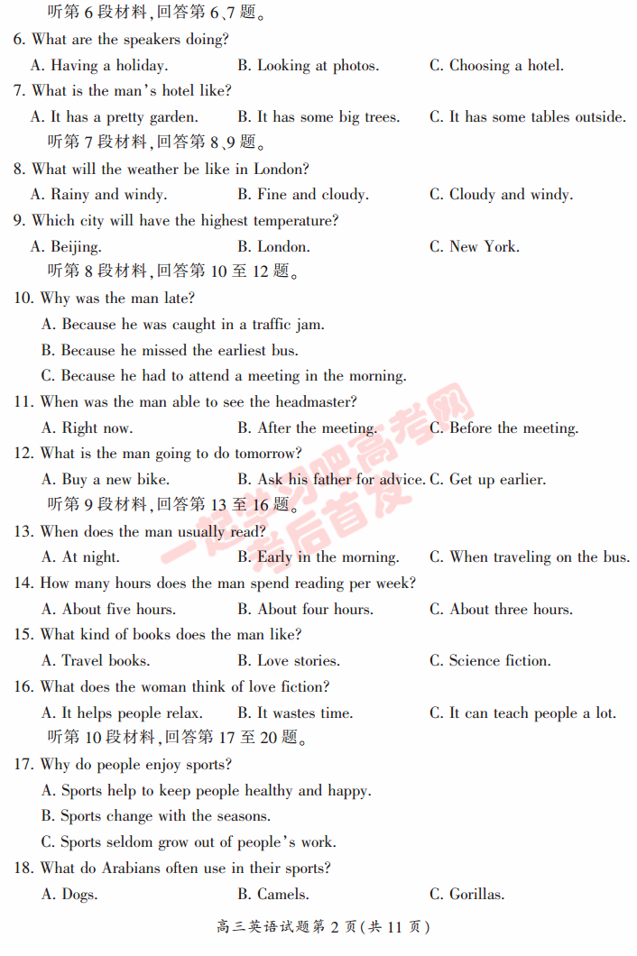 郴州市2017届高三上学期第一次教学质量监测英语试题及答案(3)